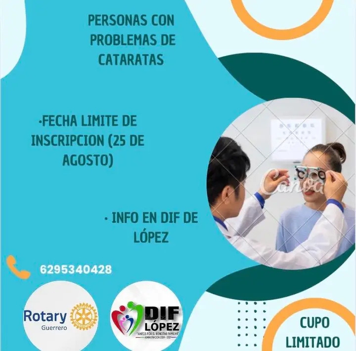 CAMPAÑA DE OPERACIONES DE CATARATAS TOTALMENTE GRATUITAS DIF municipal de López y club rotario de guerrero te invitan, No te quedes fuera recuerda que es cupo limitado